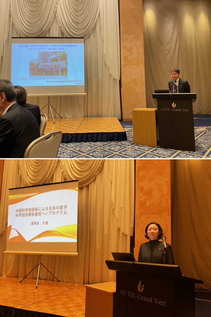 会では日中友好協会の事務局次長を務める鈴木高啓さんの講演に引き続き、当講座の岸本講師、歯科保存学(歯冠修復学)の鶴田助教が昨年10月に派遣された「中国科学技術部による日本の若手科学技術関係者招へいプログラム」の報告を行いました。